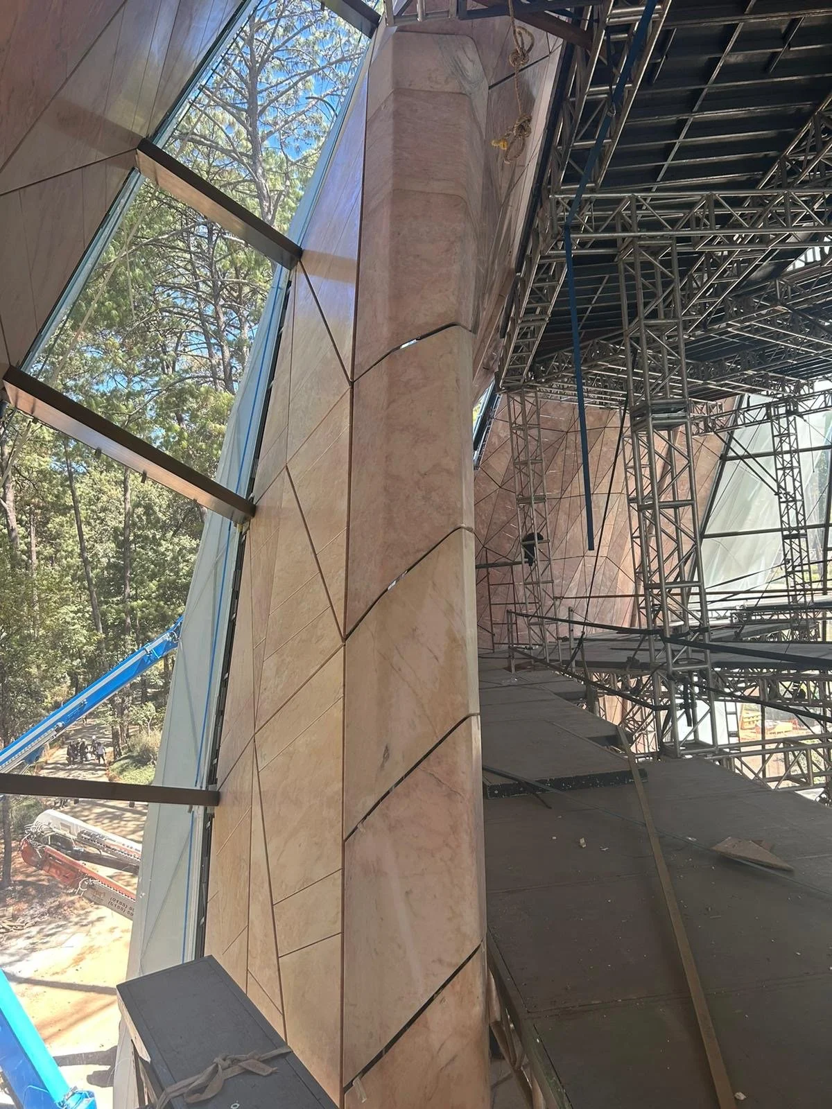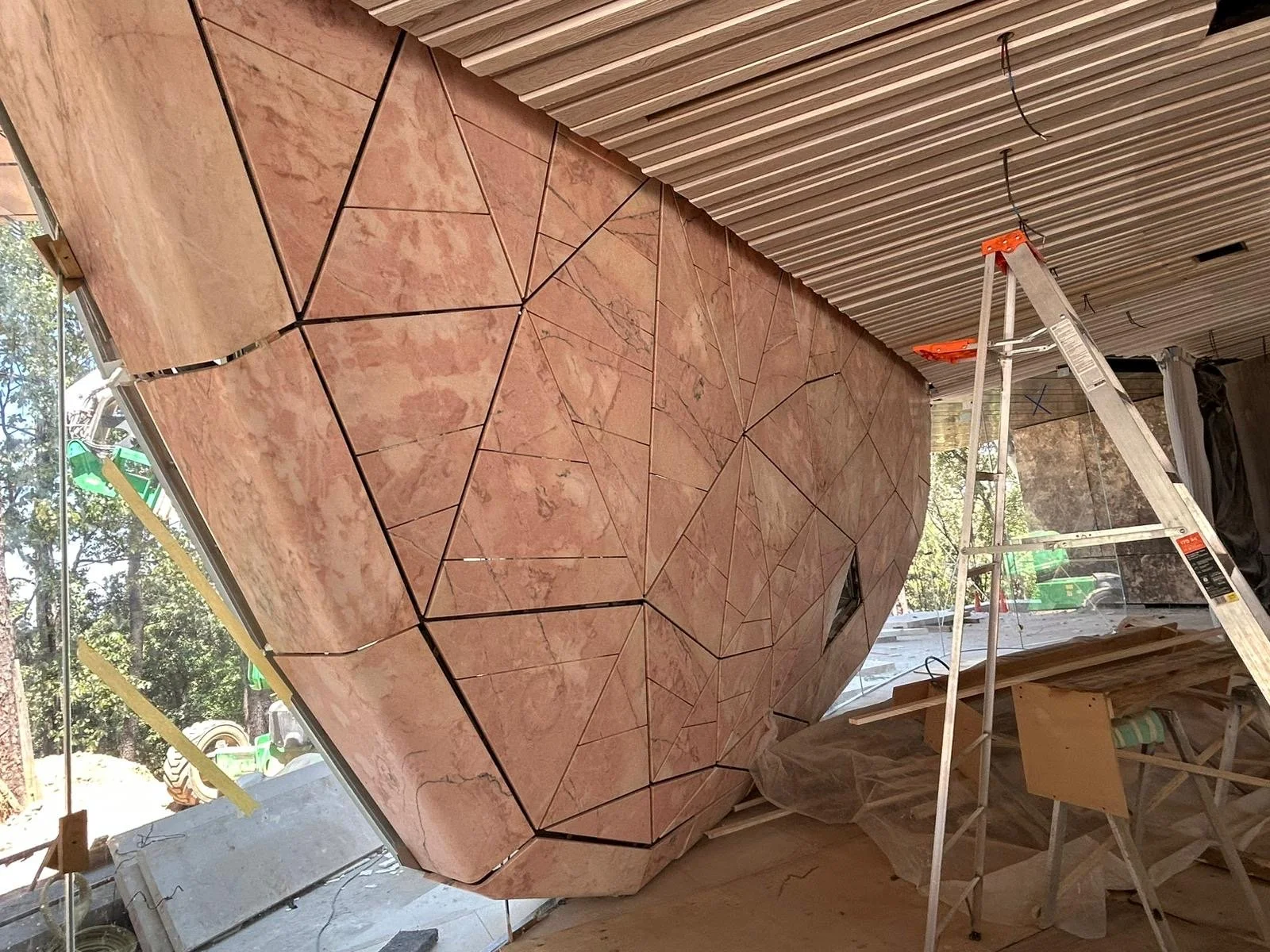 Positioned as a sculptural focal point within the property, the pink marble flower can be admired from multiple vantage points. Whether viewed from the entrance or the garden, it offers a dynamic experience, changing with the light and the viewer's perspective.