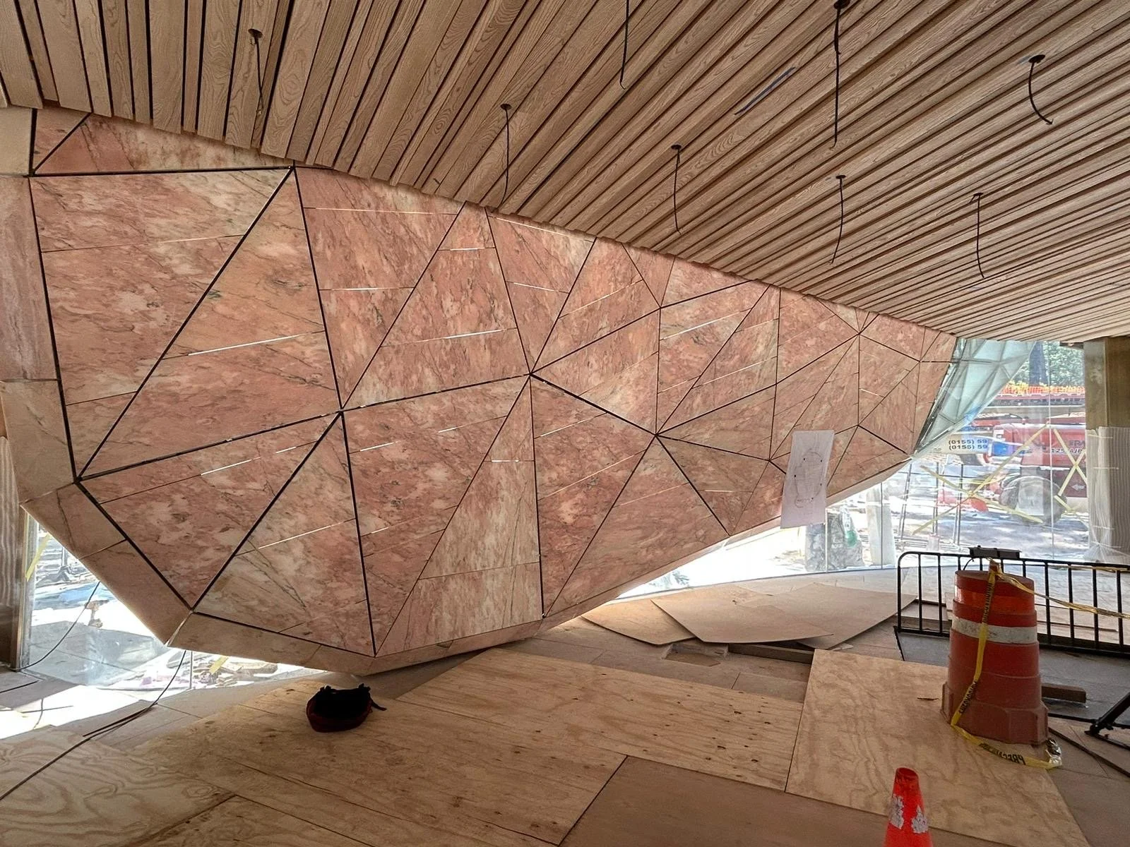 Inspired by the delicate beauty of a blooming flower, the design seeks to evoke a sense of fluidity and movement despite being crafted from solid marble. The soft pink hues of the stone harmonize with the surrounding environment, creating a striking yet serene visual experience.