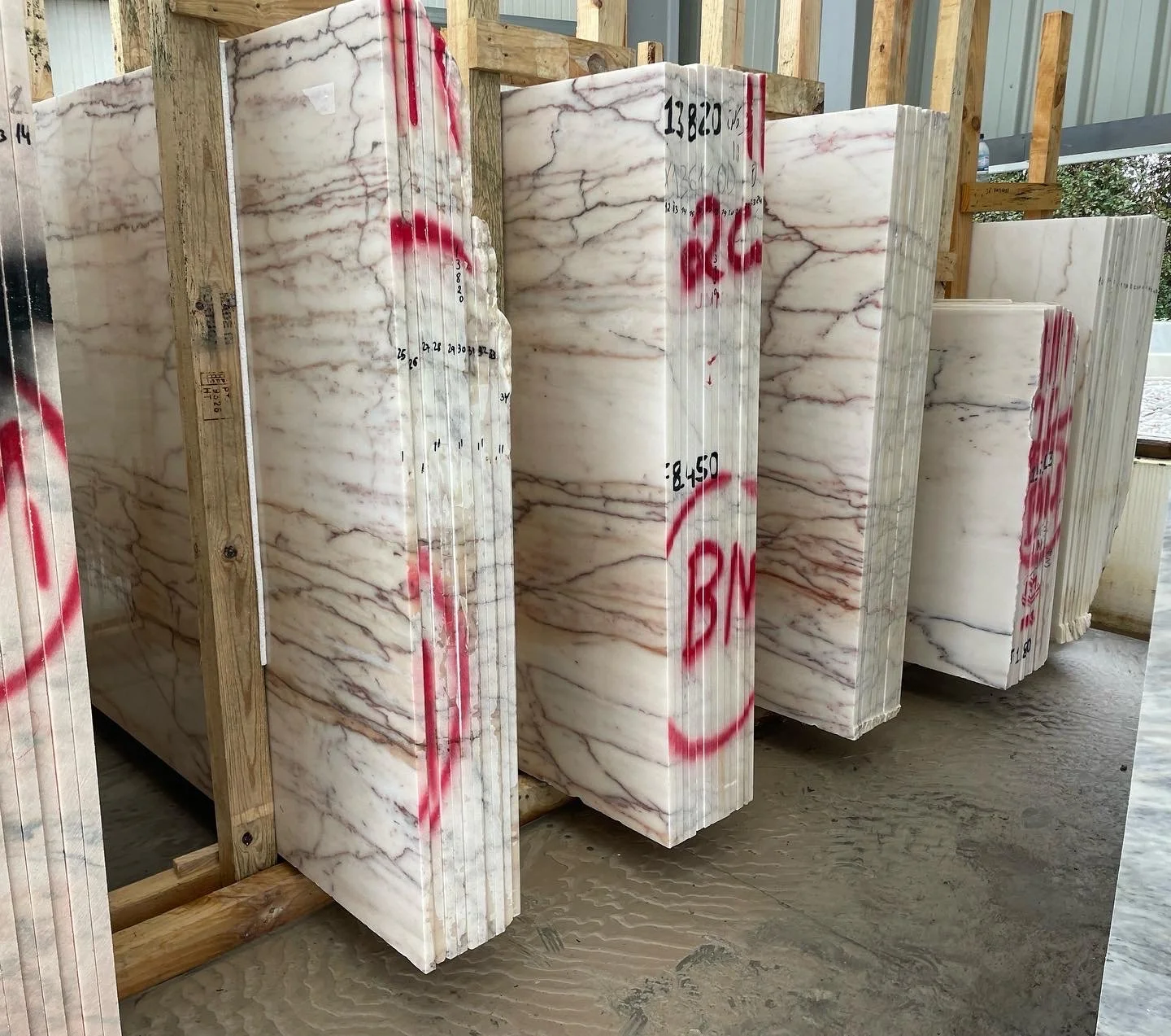 White Stripes is a natural stone with white background and red/black veins